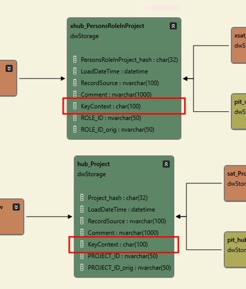 Inspect the generated view code for the Project membership. Note how the reference to Person’s role in project uses all defined key groups together with the Business key to generate the correct hash to be used, depending on the source of the current Project membership data. The substring part extracts the source name from the Project membership’s RecordSource metadata column in order to pair it with the correct Key Group of the referenced row.