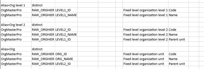 • the lowest level, ORG_ID/ORG_HIER is unique